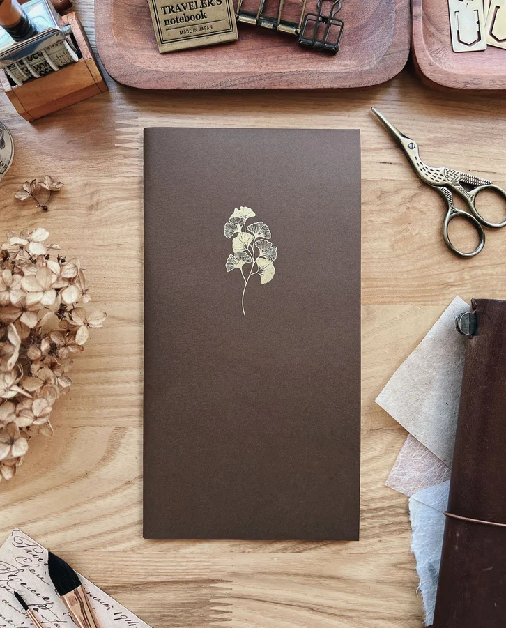 A notebook inspired by the forest filled with a hundred pages of subtly gridded Tomoe River Paper. Fits perfectly in a standard Traveler’s Notebook cover.
