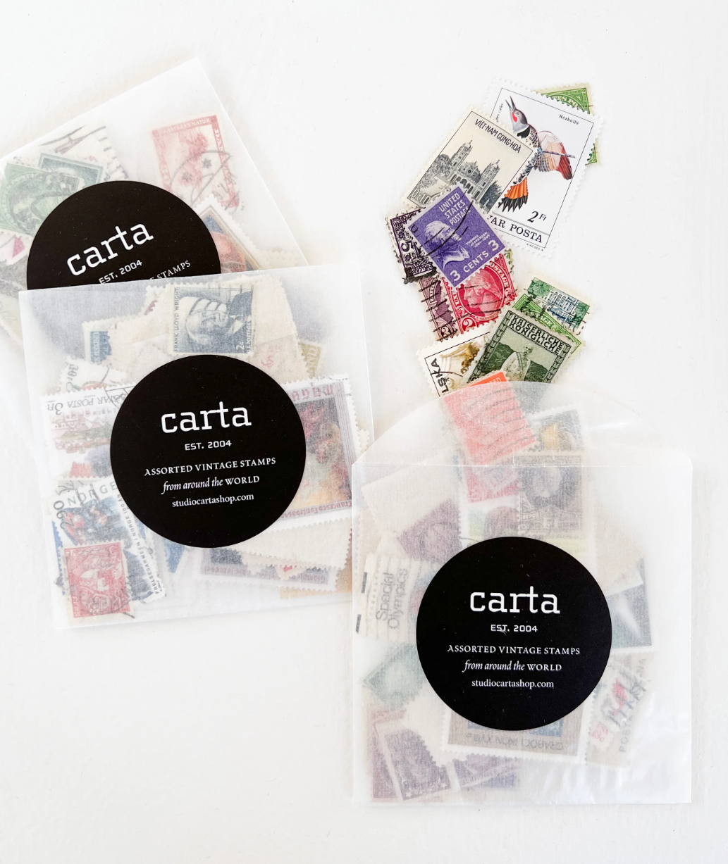 The Vintage Stamps Sets are assembled in the Studio Carta studio in Chestnut Hill, Massachusetts, USA.