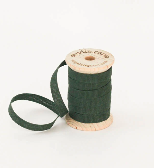Too pretty to keep in a drawer, 5 yards of our Italian 1/4” tight weave cotton ribbon is hand wound around a US-made, wooden spool.